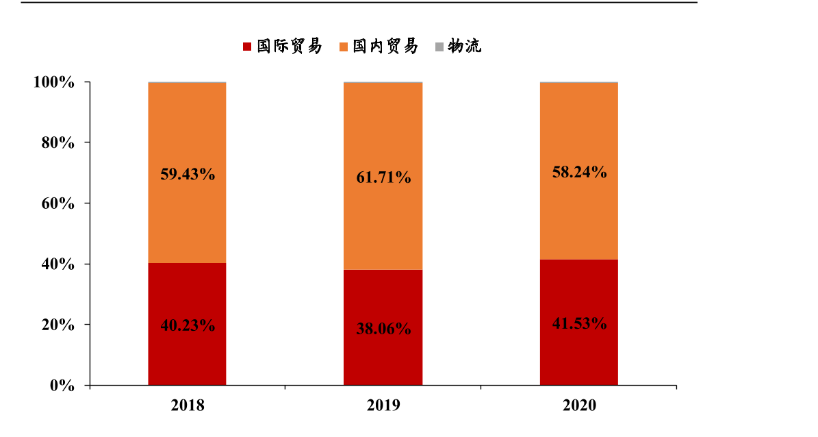 公司国际/国内贸易服务收入占供应链业务收入比重