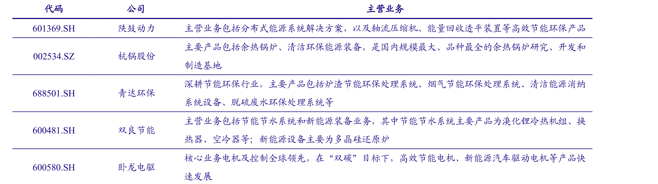低碳化改造相关标的梳理(图表内包含“节能,环保”)