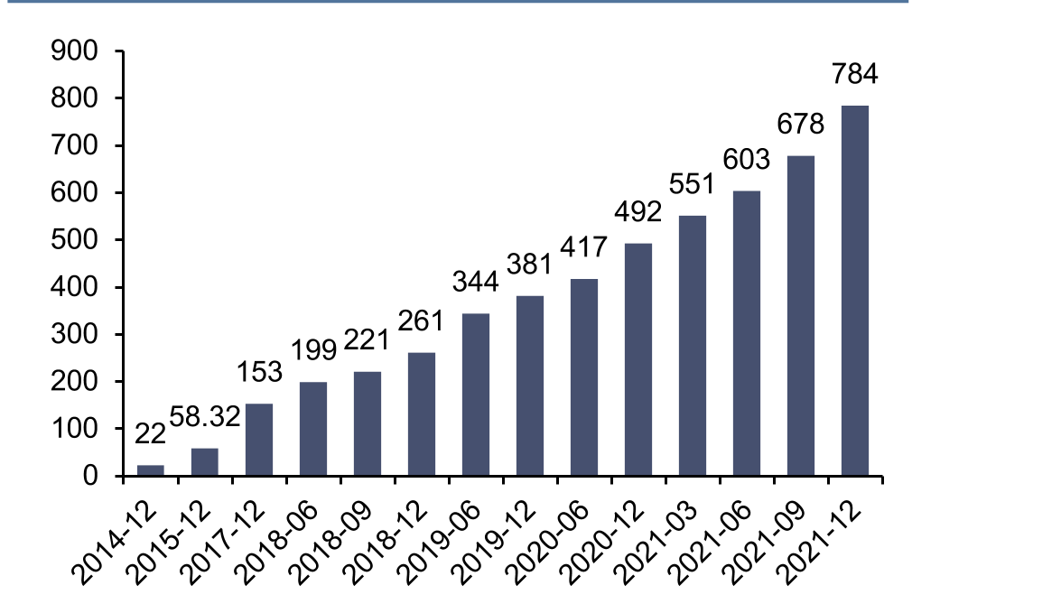 2014年2022年国内新能源汽车月销售量(单位:万辆)