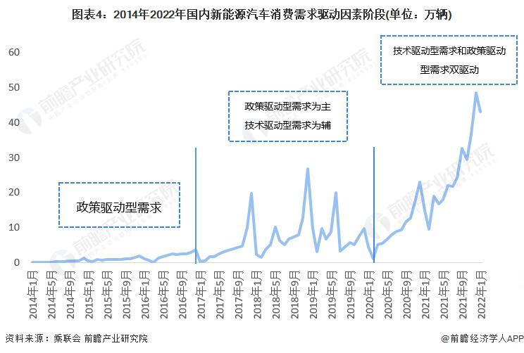 2014年2022年国内新能源汽车消费需求驱动因素阶段单位:万辆)