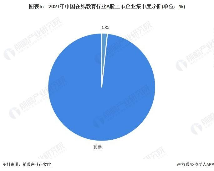 2021年中国在线教育行业A股上市企业集中度分析(单位:%)